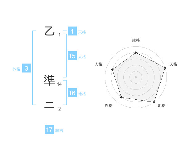 乙 準ニさんの総格は17画の4点!