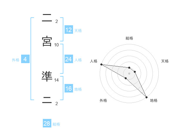 二宮 準ニさんの天格は12画の1点!
