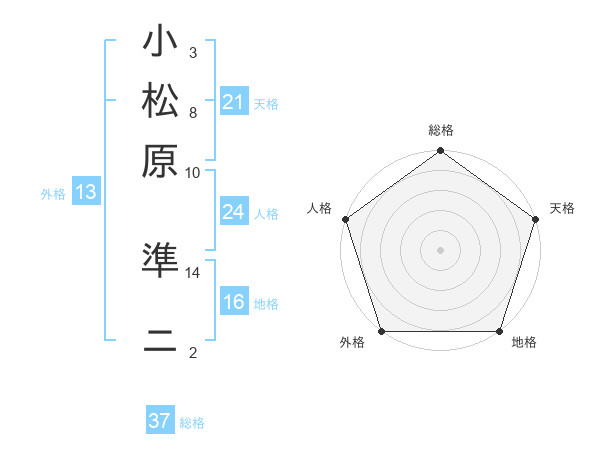 小松原 準ニさんの天格は21画の5点!