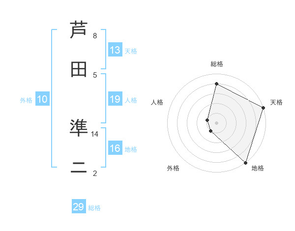 芦田 準ニさんの天格は13画の5点!