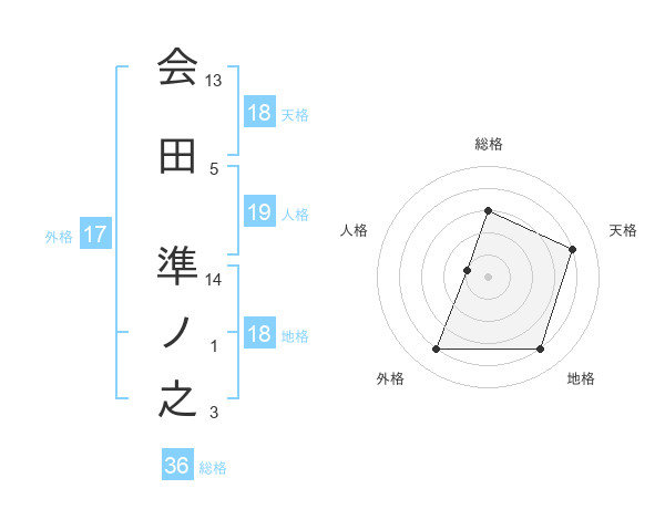会田 準ノ之さんを姓名の画数から五運を鑑定