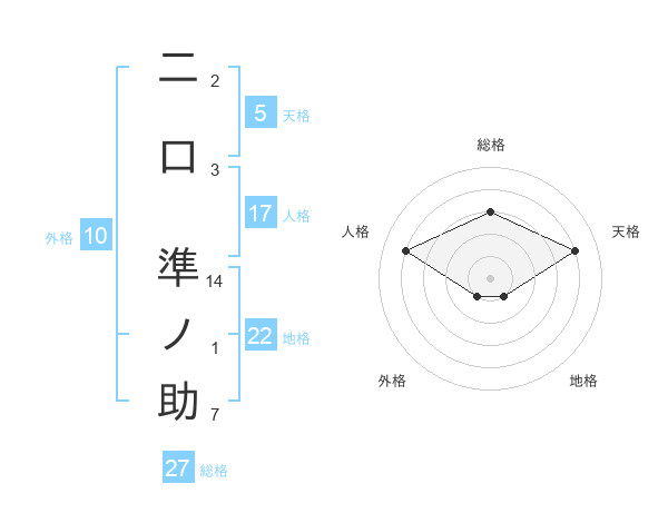 二口 準ノ助さんの総格は27画の3点!