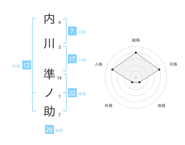 内川 準ノ助さんを姓名の画数から五運を鑑定