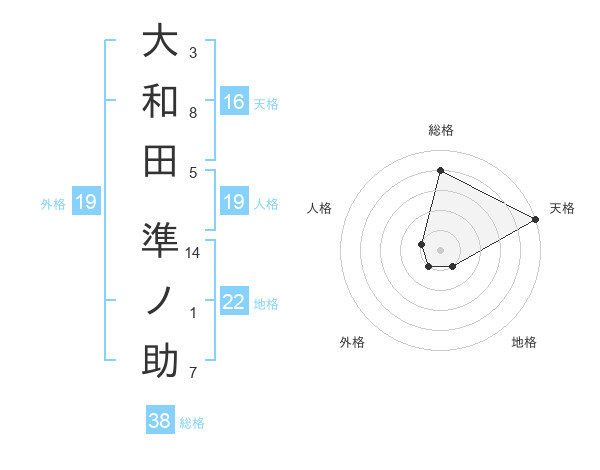 大和田 準ノ助さんの総格は38画の4点!