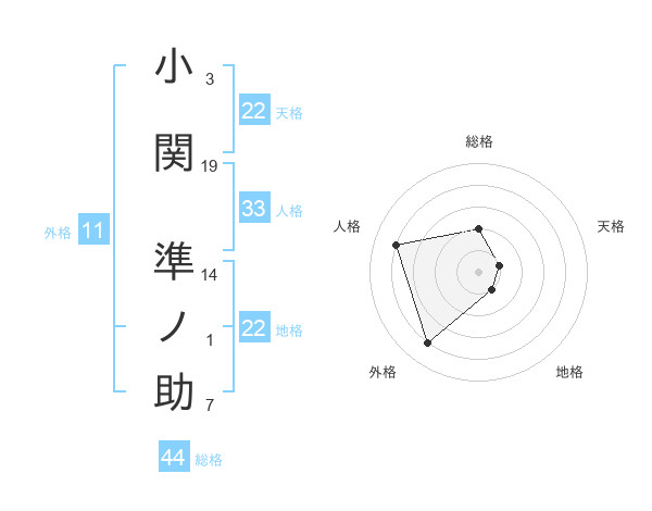 小関 準ノ助さんの総格は44画の2点