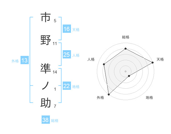 市野 準ノ助さんを姓名の画数から五運を鑑定