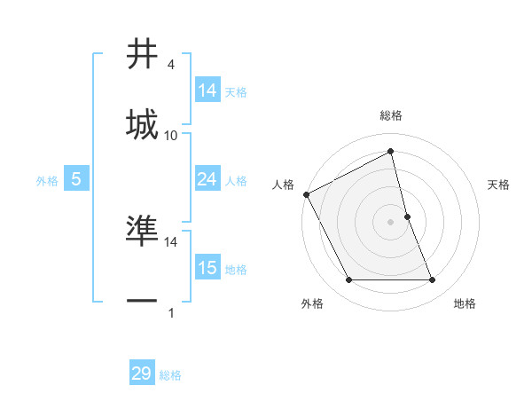 井城 準一さんの総格は29画の4点!