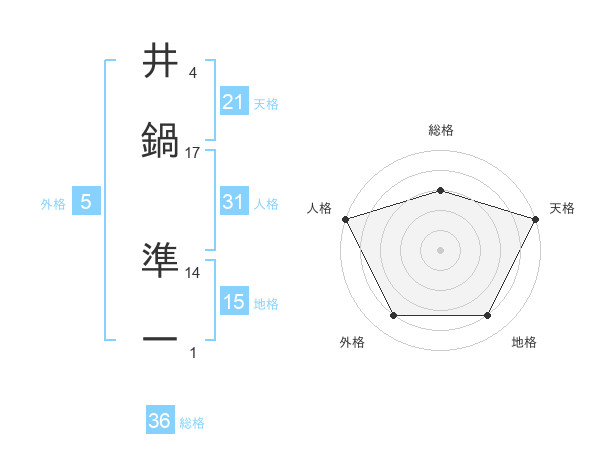 井鍋 準一さんの天格は21画の5点!