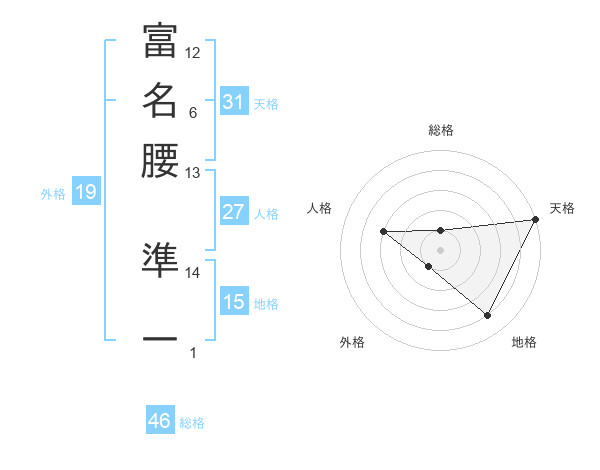 富名腰 準一さんを姓名の画数から五運を鑑定