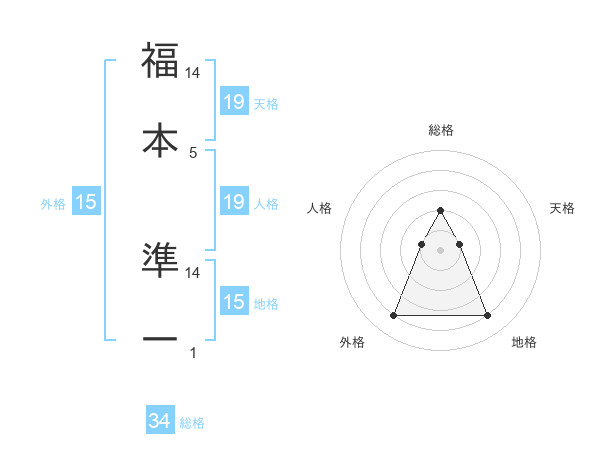 福本 準一さんの地格は15画の4点!