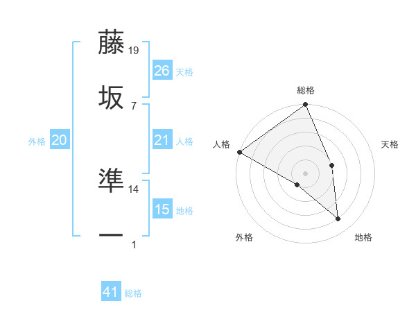 藤坂 準一さんの総格は41画の5点!