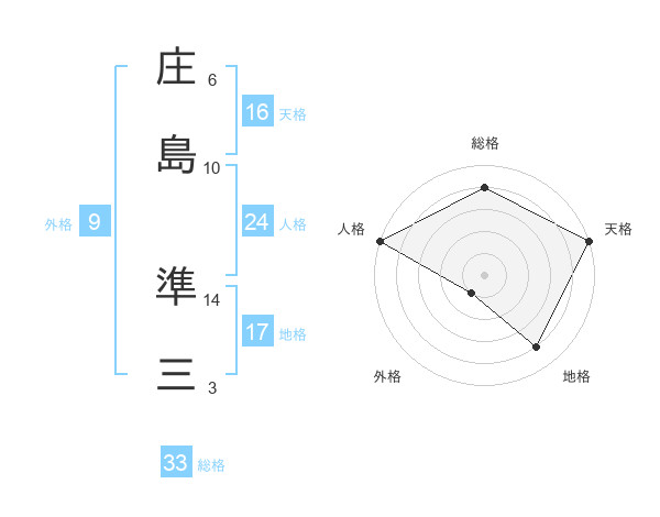 庄島 準三さんの総格は33画の4点!