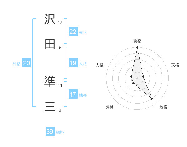 沢田 準三さんの天格は22画の1点!