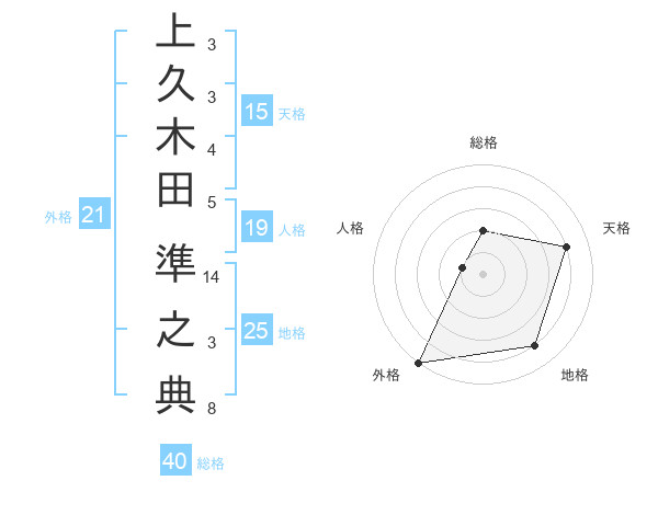 上久木田 準之典さんを姓名の画数から五運を鑑定