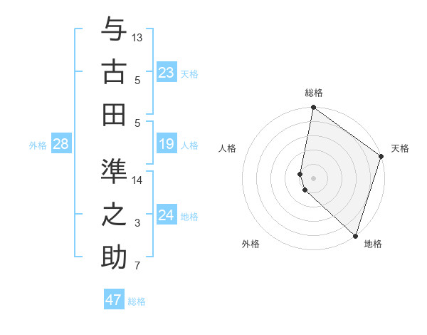 与古田 準之助さんを姓名の画数から五運を鑑定