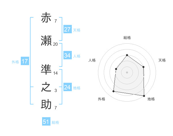 赤瀬 準之助さんを姓名の画数から五運を鑑定