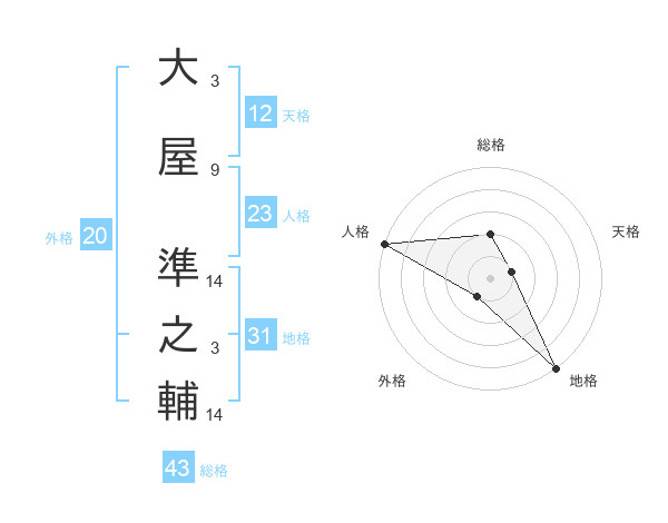 大屋 準之輔さんを姓名の画数から五運を鑑定