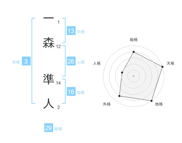 一森 準人さんの天格は13画の5点!