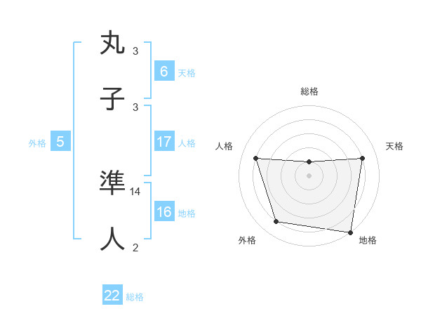 丸子 準人さんの総格は22画の1点!