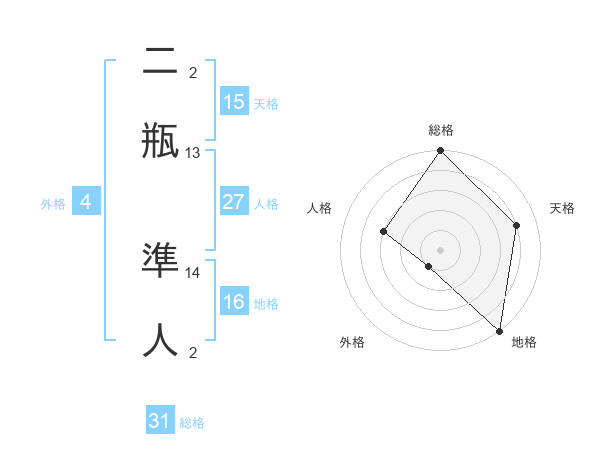 二瓶 準人さんの天格は15画の4点!