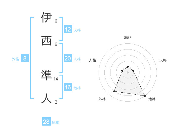 伊西 準人さんの天格は12画の1点!