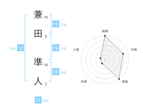 兼田 準人さんの天格は15画の4点!