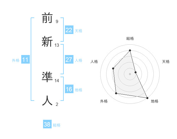 前新 準人さんの天格は22画の1点!