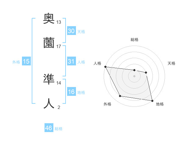 奥薗 準人さんの総格は46画の1点!