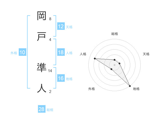 岡戸 準人さんの総格は28画の1点!