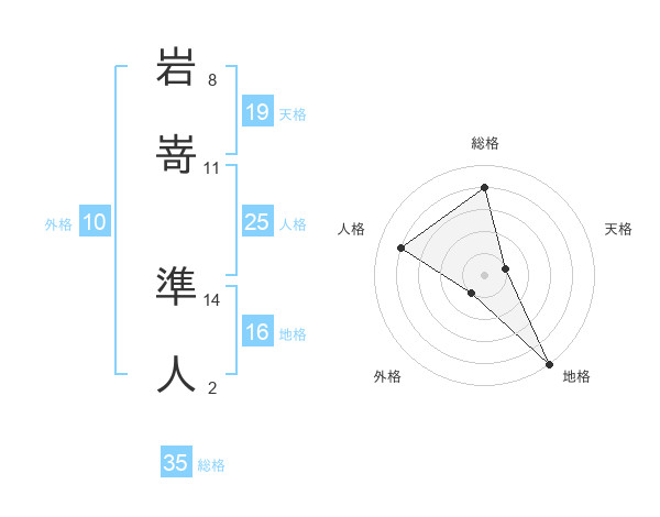 岩嵜 準人さんの総格は35画の4点!
