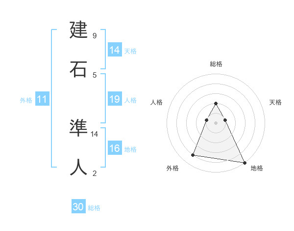 建石 準人さんの総格は30画の2点!
