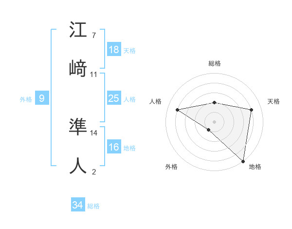 江﨑 準人さんの総格は34画の2点!