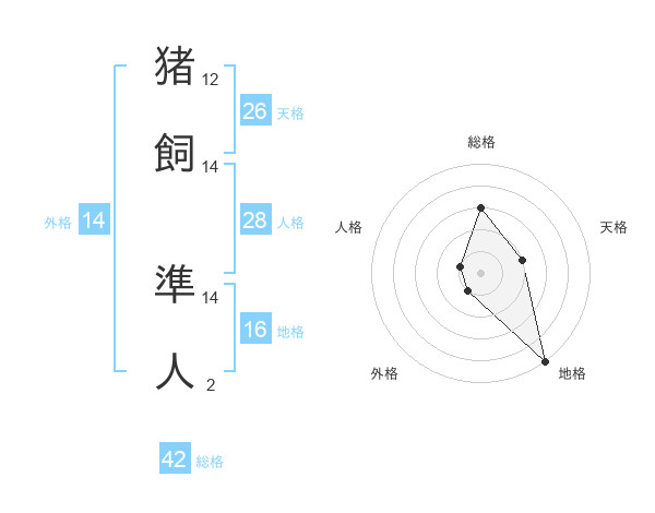 猪飼 準人さんの天格は26画の2点!