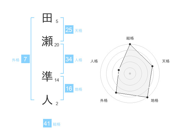 田瀬 準人さんの総格は41画の5点!