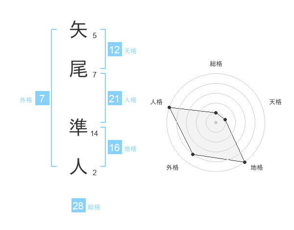 矢尾 準人さんの人格は21画の5点!