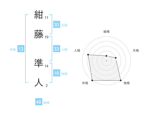紺藤 準人さんを姓名の画数から五運を鑑定