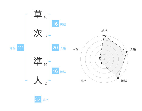草次 準人さんの総格は32画の5点!