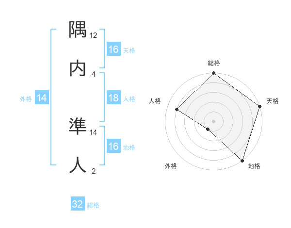 隅内 準人さんの天格は16画の5点!
