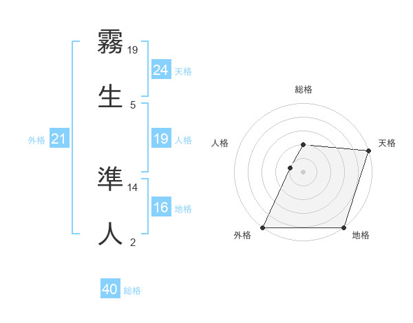 霧生 準人さんの外格は21画の5点!