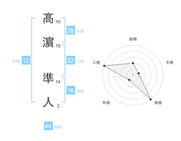 髙濵 準人さんの総格は44画の2点!