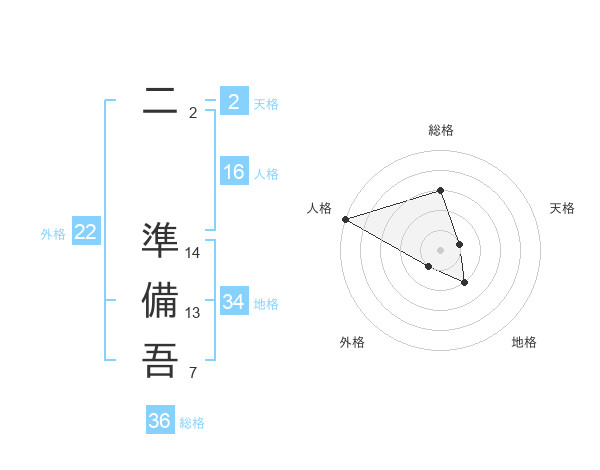 二 準備吾さんの総格は36画の3点!