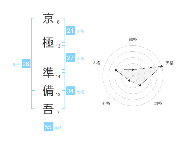 京極 準備吾さんを姓名の画数から五運を鑑定