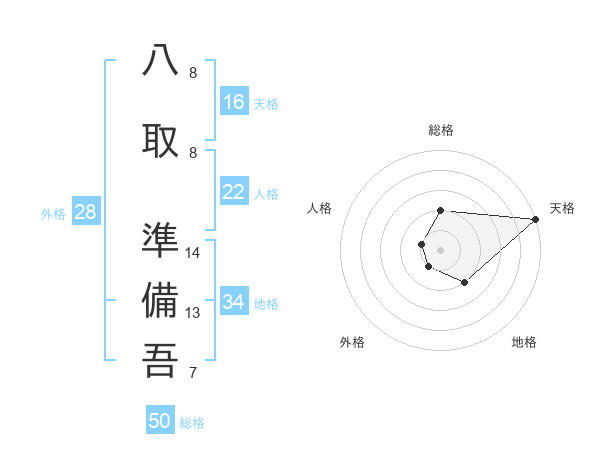 八取 準備吾さんの総格は50画の2点!