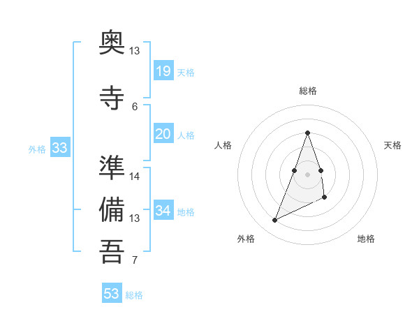奥寺 準備吾さんを姓名の画数から五運を鑑定