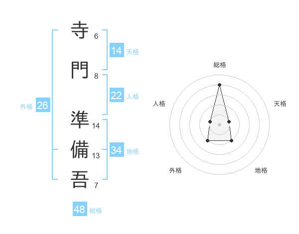 寺門 準備吾さんの総格は48画の4点!