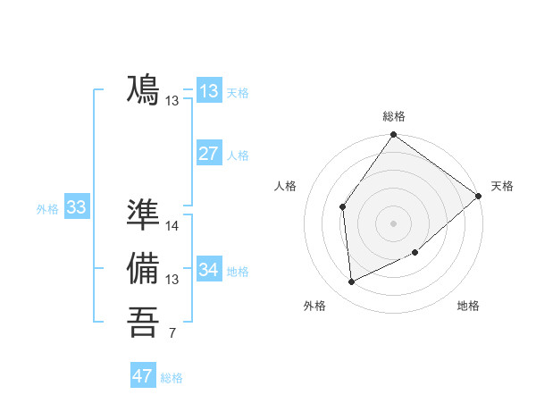 鳰 準備吾さんの総格は47画の5点!