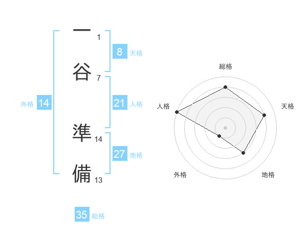 一谷 準備さんの総格は35画の4点!