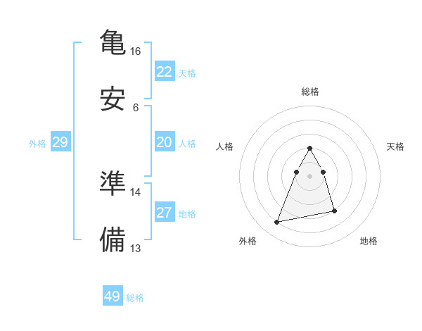 亀安 準備さんの総格は49画の2点!