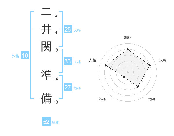 二井関 準備さんの総格は52画の4点!