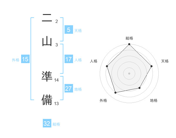 二山 準備さんの総格は32画の5点!
